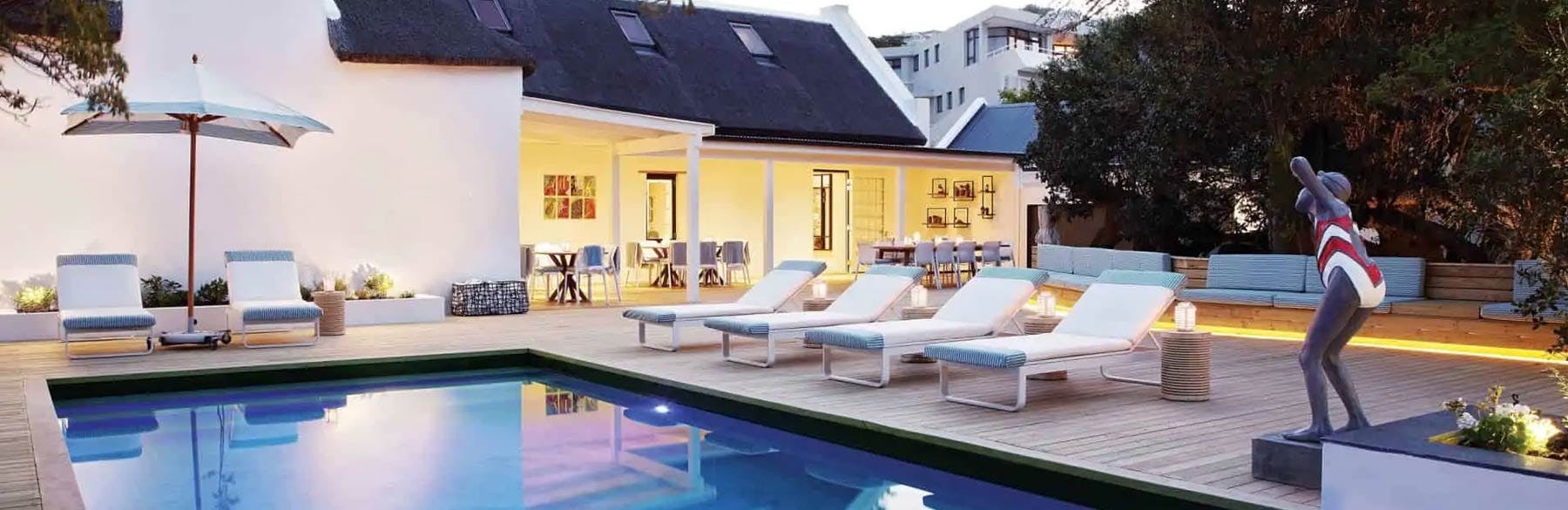 Fresh and sophisticated with eye-catching South African art and pops of vivid colour, these luxury suites feature king-sized beds, an open-plan en-suite bathroom with walk-in rain shower and their own sunny gardens.