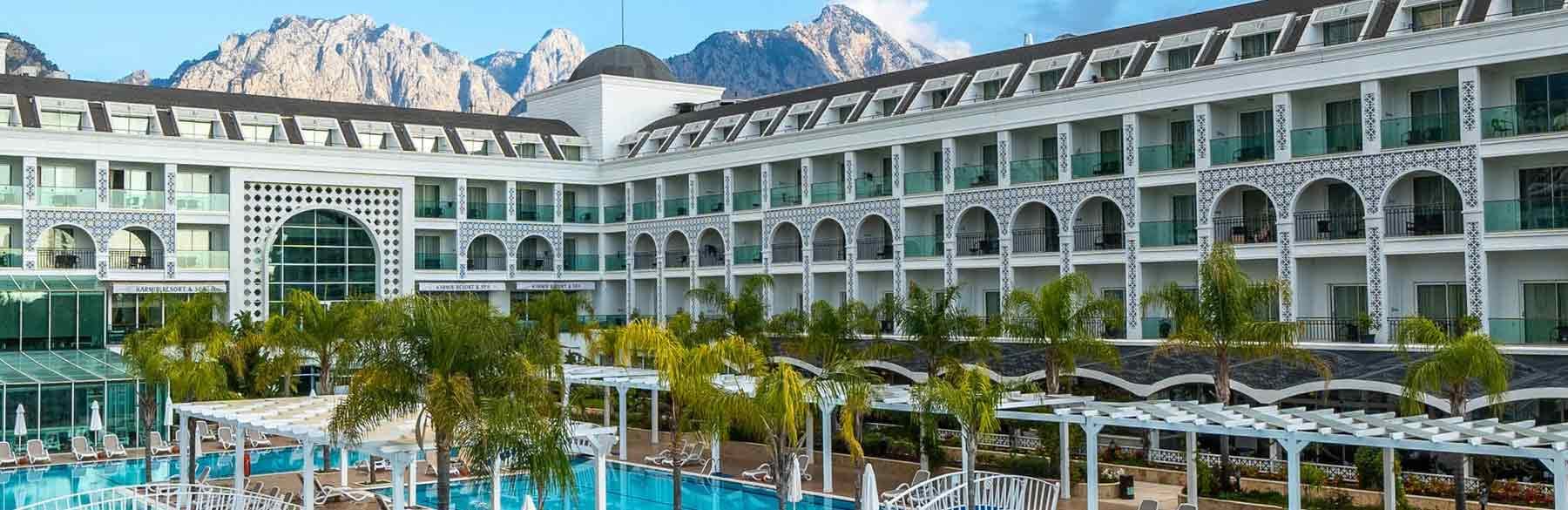Karmir Resort and Spa Hotel is situated approx 90 meter from the beach and is just 9 kilometer from Kemer city centre. Antalya city centre is approx 30 kilometer. Antalya airport is 40 kilometer away form the hotel.