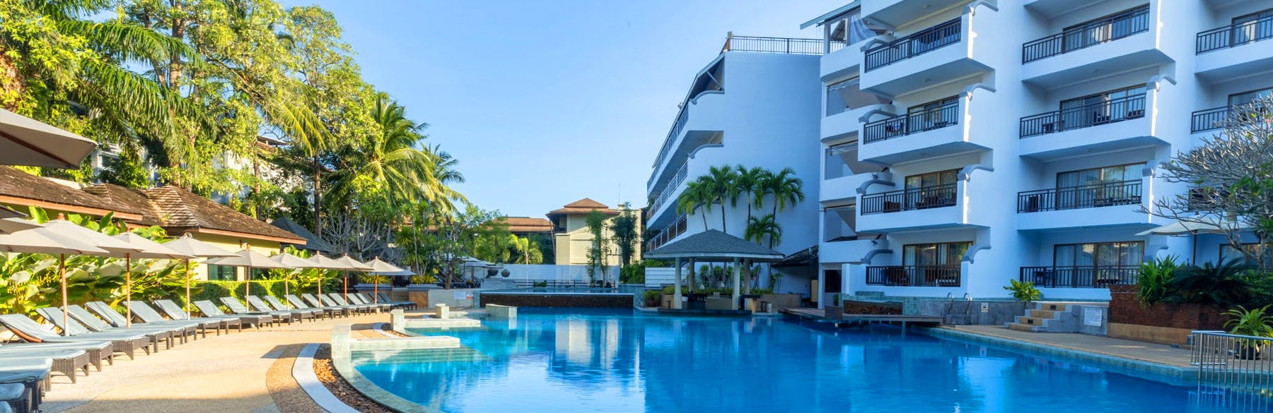 Modern and comfortable rooms overlooking Emerald pool with 39 square metres in size. Connecting doors to neighbouring rooms are available – ideal for families.<>