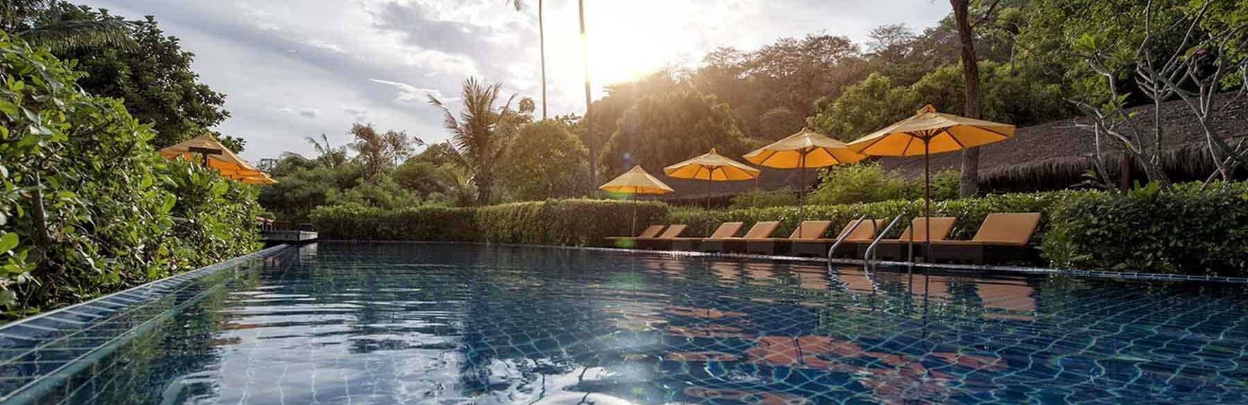 Nestled upon the forested hillside, the heavenly Pool Villa Suites offer spectacular 180 degree views of the exotic rainforest.The spacious 120 sqm villas are extremely private, a sanctuary where honeymooners and romantics can cocoon themselves