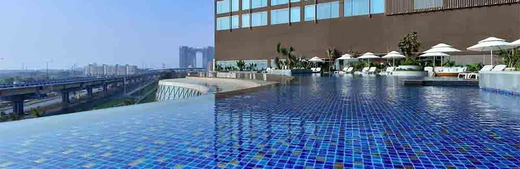 Take a refreshing dip in expansive infinity pool, then sip on a refreshing concoction from pool bar in Kolkata, India, while you admire the city skyline.