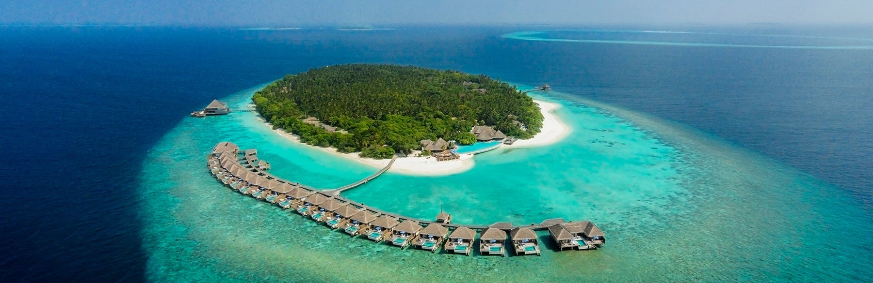 Dusit Thani Maldives is a 35-minute seaplane journey from Male International Airport or a 25-minute domestic flight to Dharavandhoo Domestic Airport followed by a 10-minute speedboat ride to the resort.