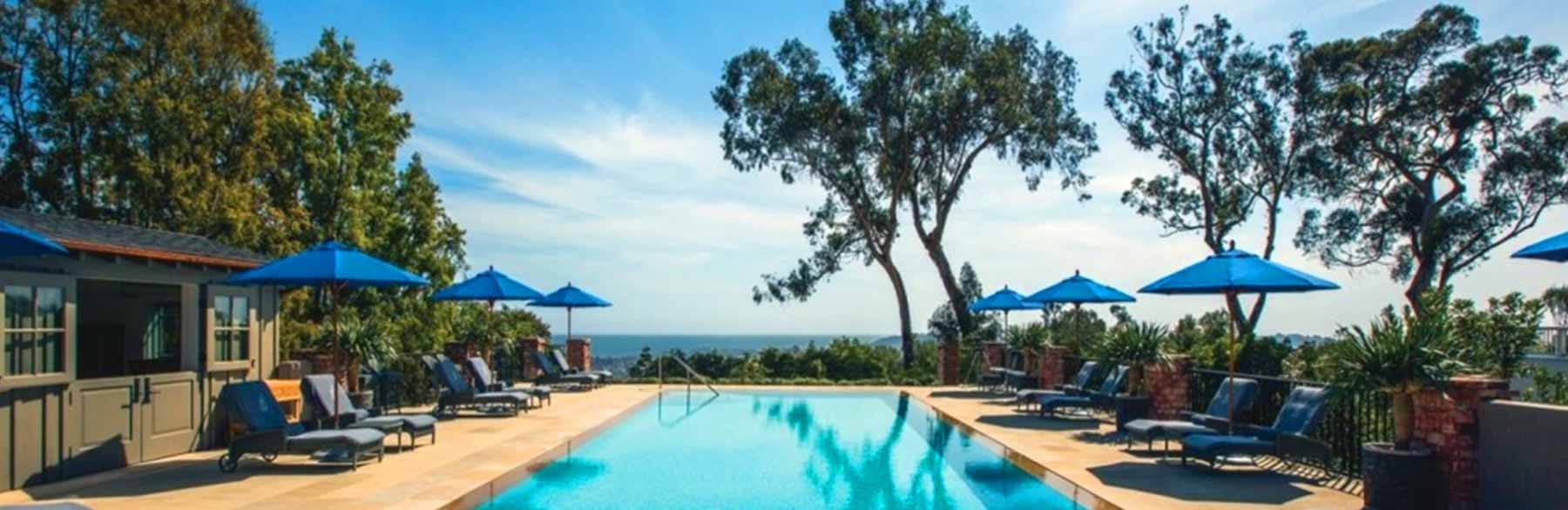 This luxe hotel, a mix of Spanish Colonial Revival and Craftsman buildings amid 7 acres of lush gardens, is in a private hillside setting in the Riviera neighborhood.