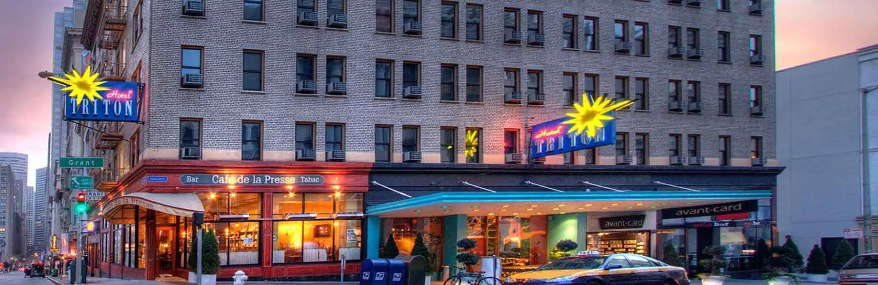 Hotel Triton is located in the heart San Francisco and nearby to the nexus of Chinatown, Union Square, the Financial District, and 6 blocks from Nob Hill. San Francisco International Airport is 13.7 miles from hotel.